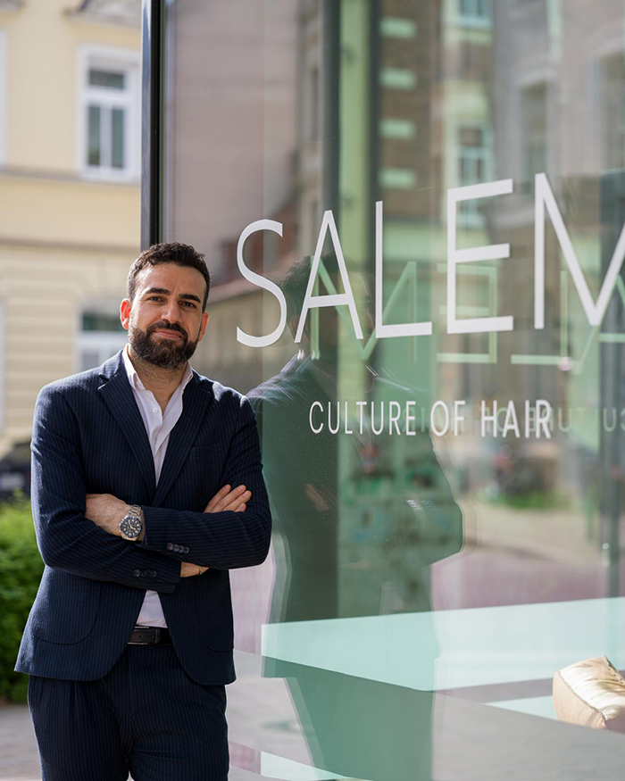 Im April 2024 erfüllt sich Salem seinen großen Traum und eröffnet „Salem Salon I Culture of Hair“, einen hellen Friseursalon mit hohen Decken und großer Fensterfront im Herzen Münchens, zwischen Maximilian- und Prinzregentenstraße. Hier lebt er die Begeisterung für seinen Beruf. „Ich wollte den Laden modern, klassisch und minimalistisch einrichten, aber mit einem Hauch meiner Heimat“, erzählt er stolz. Die Atmosphäre wird durch internationale Musik und traditionelle Details, wie Nischen mit Licht-Elementen und Vasen, sowie einer Gaslampe ergänzt. Die Inspiration hat er in seinem Elternhaus gefunden, wo es kaum Strom gab und stattdessen Gaslampen in Nischen in der Wand den Räumen Licht gegeben haben.