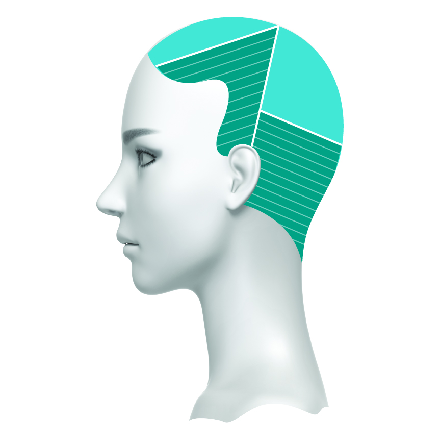 Step 2: Rezeptur 1 auf die Partien rechts und links der Krone sowie rechts und links des Nackens auftragen.