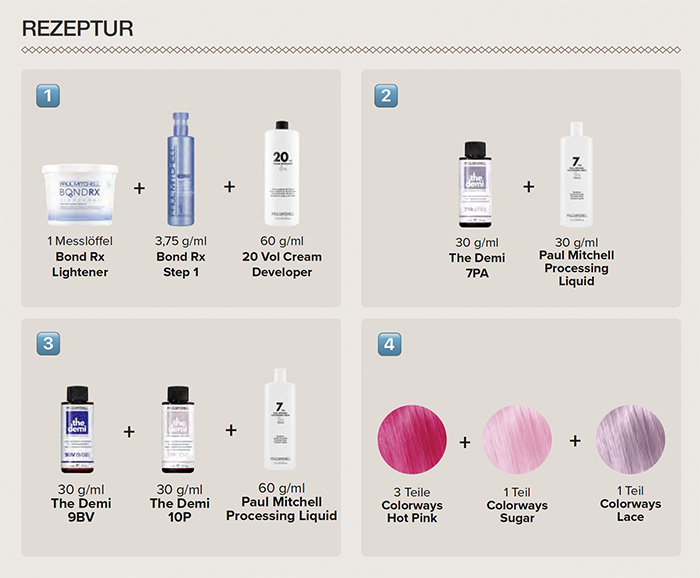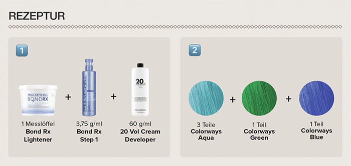 Step 5: Rezeptur 2 auf die vorblondierten Sektionen auftragen und 30 Minuten einwirken lassen.
