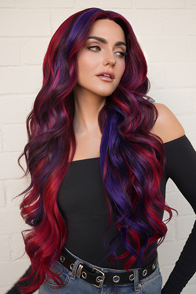 Die neuen Nuancen Red Velvet und Violet Plum ergänzen die Palette um dramatische Farben – für noch mehr Vielfalt, Individualität und Ausdruckskraft im Salonalltag. Die Stylistin Meaghan Masterson zeigt mit ihrem Look „Royal Drama“, wie edel die neuen Colorways Nuancen miteinander harmonieren.