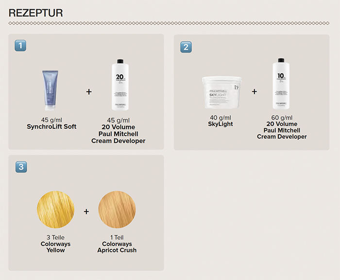 Step 5: Anschließend Rezeptur 3 auf die vorblondierten Partien auftragen und 30 Minuten einwirken lassen.