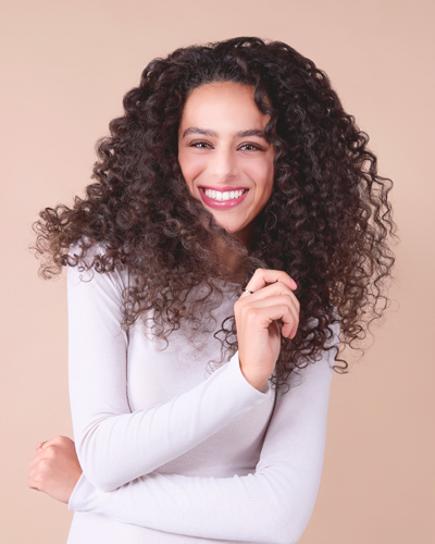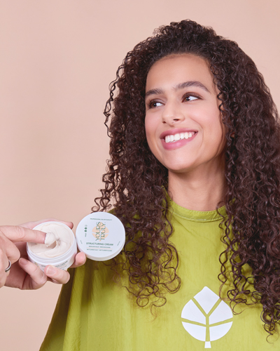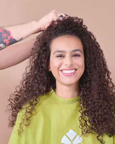 1. Das Sculpting Liquid Gel in das handtuchtrockene Haar einarbeiten und Locken twisten. Im Anschluss das Haar mit einem Diffusor sanft trocknen. So bleiben die einzelnen Locken gebündelt und glänzend.