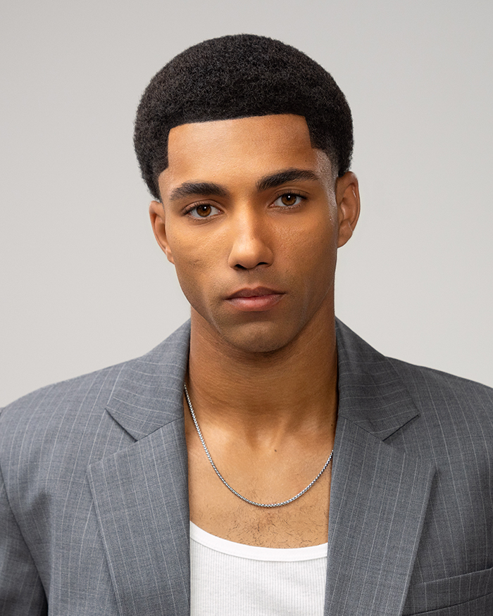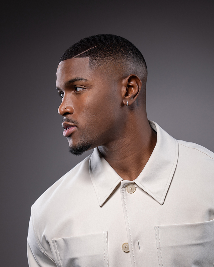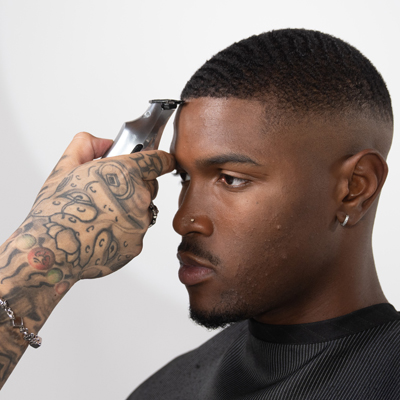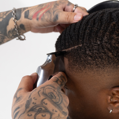 Klar. Selbstbewusst. Raffiniert. Der Sharp Texture Taper ist ein Statement für moderne Männlichkeit – mit präziser Linienführung und texturiertem Finish. Der Look schafft eine elegante Silhouette mit Tiefe und Kontur. Der Wave Fade dagegen zeichnet sich durch einen engen, sauber verblendeten Übergang an den Seiten aus, der sanft in längere Partien übergeht und so einen nahtlosen, stilvollen Look mit mehr Dimension schafft. Die Waves am Oberkopf sind klar definiert, wodurch die natürliche Haarstruktur betont wird.