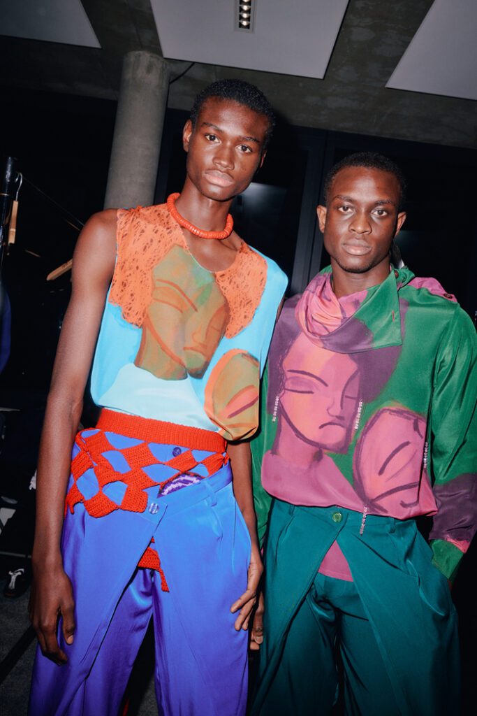 Die Kollektion sollte zugleich eine emotionale Hommage an den gesellschaftlichen Druck in Nigeria sein, wo Perfektion oft mit Wert gleichgesetzt wird – und an die Schönheit, diese Illusion zu durchbrechen. Das Label arbeitete bei den Designs mit einer Materialmischung aus Regenesis-Stoffen, handgewebtem Aso-Oke, Baumwolle und Wolle. Die Farbpalette zeigte sich lebendig und ausdrucksstark.