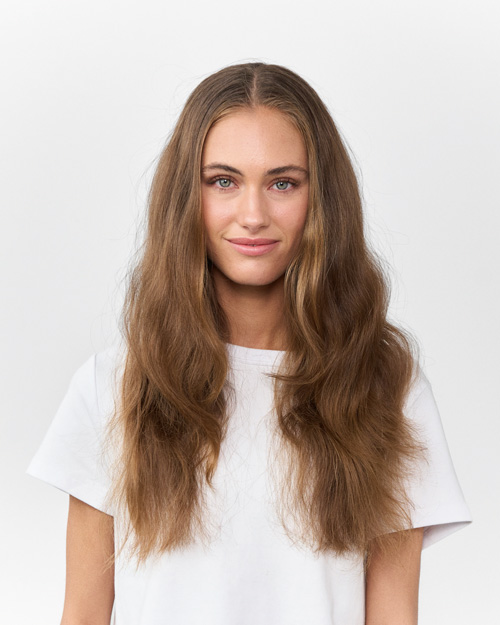Beige-, Gold- und Honignuancen verschmelzen zu einem weichen, warmen Glow. Der Look schmeichelt der Gesichtskontur, betont natürliche Haarbewegung und erinnert an einen Sommerteint – modern, sanft und nie überzeichnet.